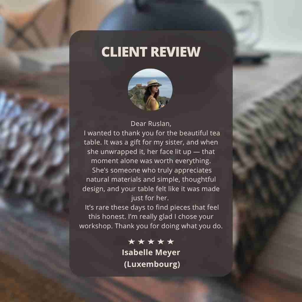 This eco-friendly, handcrafted wooden table isn’t just for tea — it's for making every moment special. Whether it's your morning coffee, post-yoga tea, or breakfast in bed, this versatile piece blends seamlessly into your home, adding warmth and style. Why have ordinary when you can enjoy something personal, made with care and built to last?